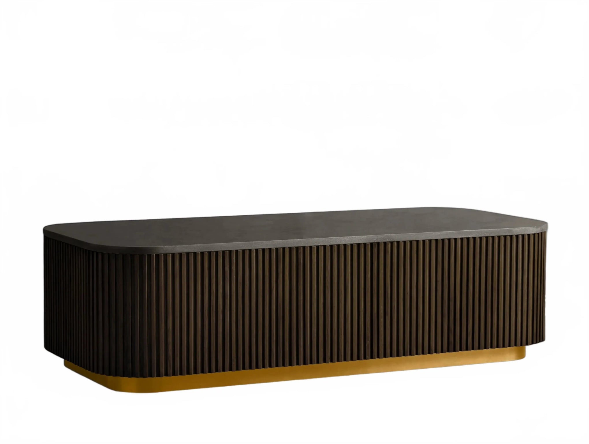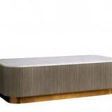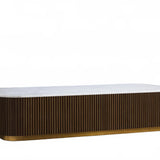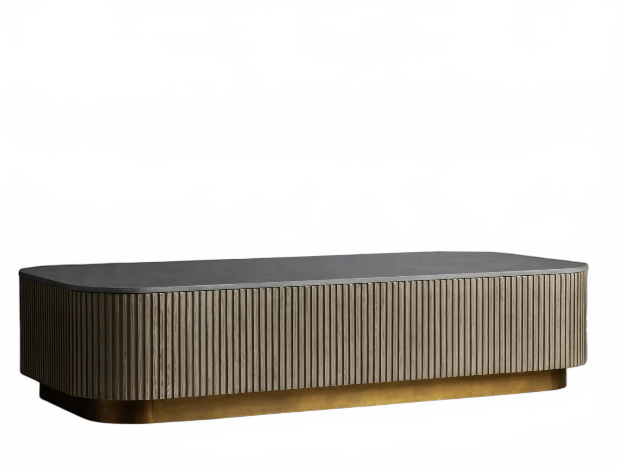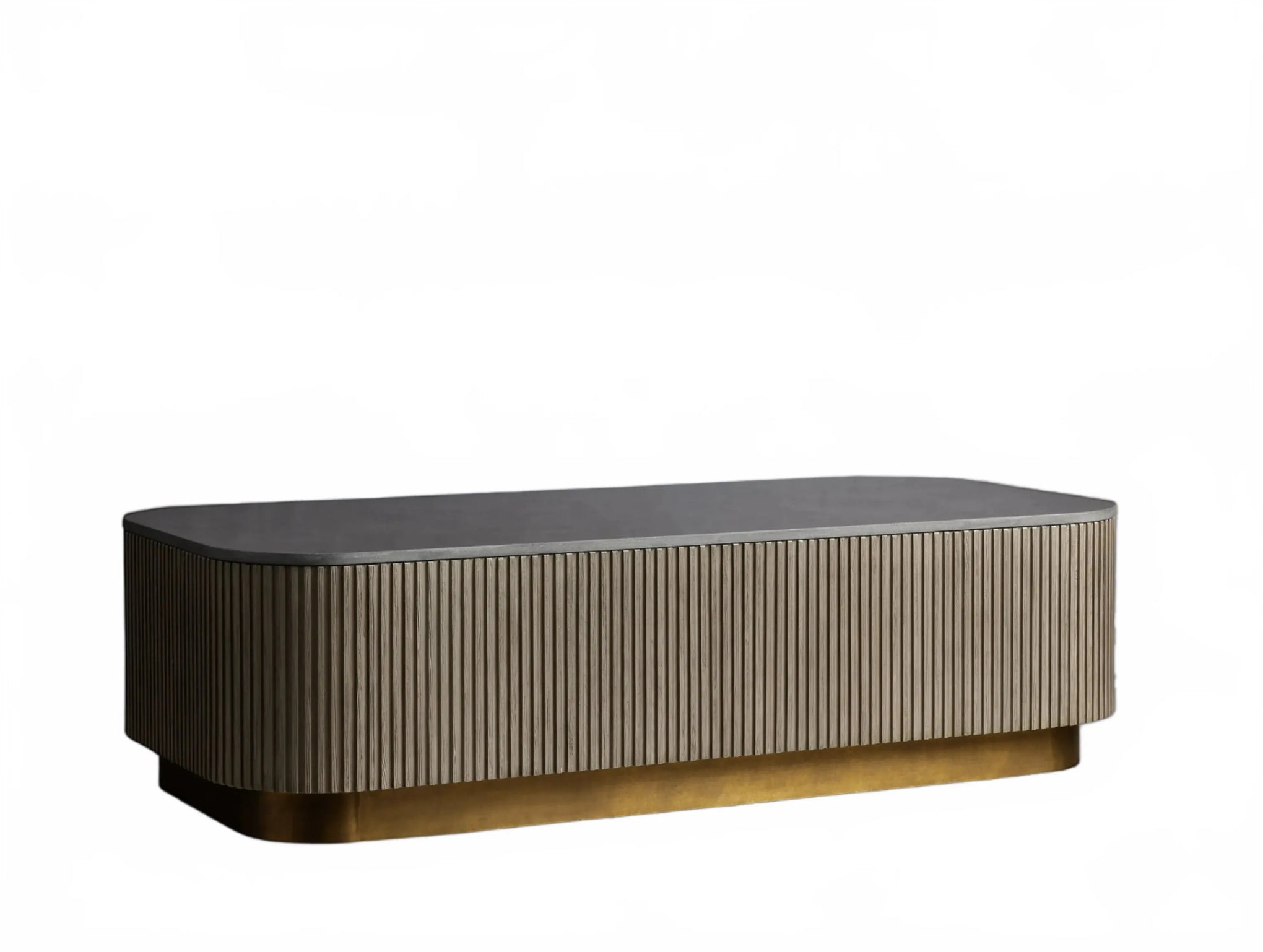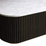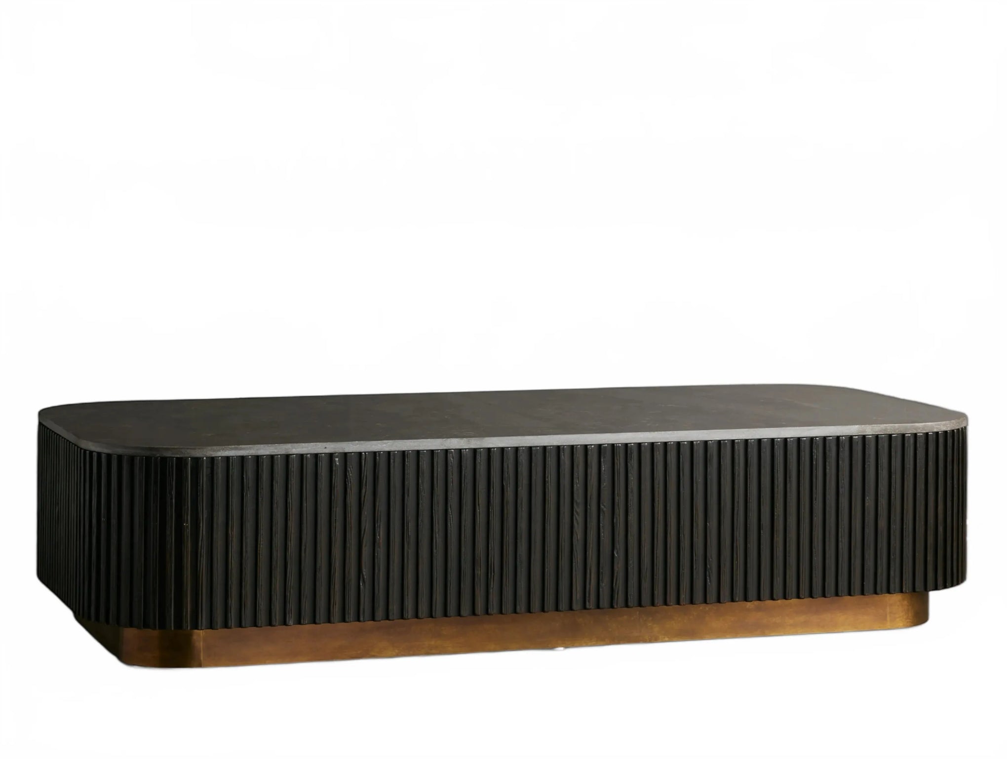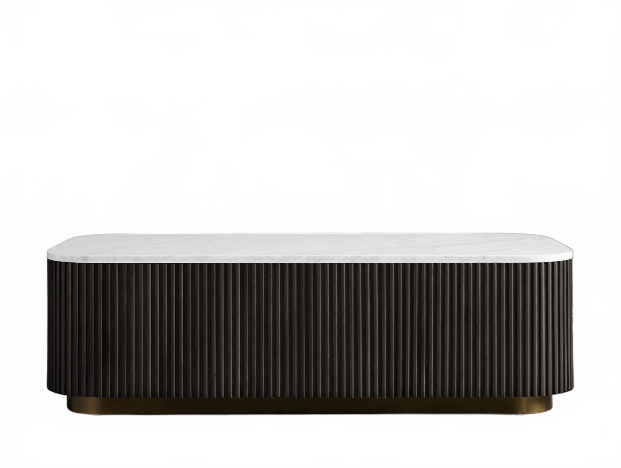 The Rolphin coffee table presents a sophisticated mixed-material composition that marries natural wood with elegant stone. Hand-finished Finnish pine or premium white oak is paired with reeded oak detailing and crowned with stone in white marble or bluestone. A brass-finished plinth base finalizes the aesthetic, delivering refined style and lasting durability—an attention-grabbing centerpiece for every living space.