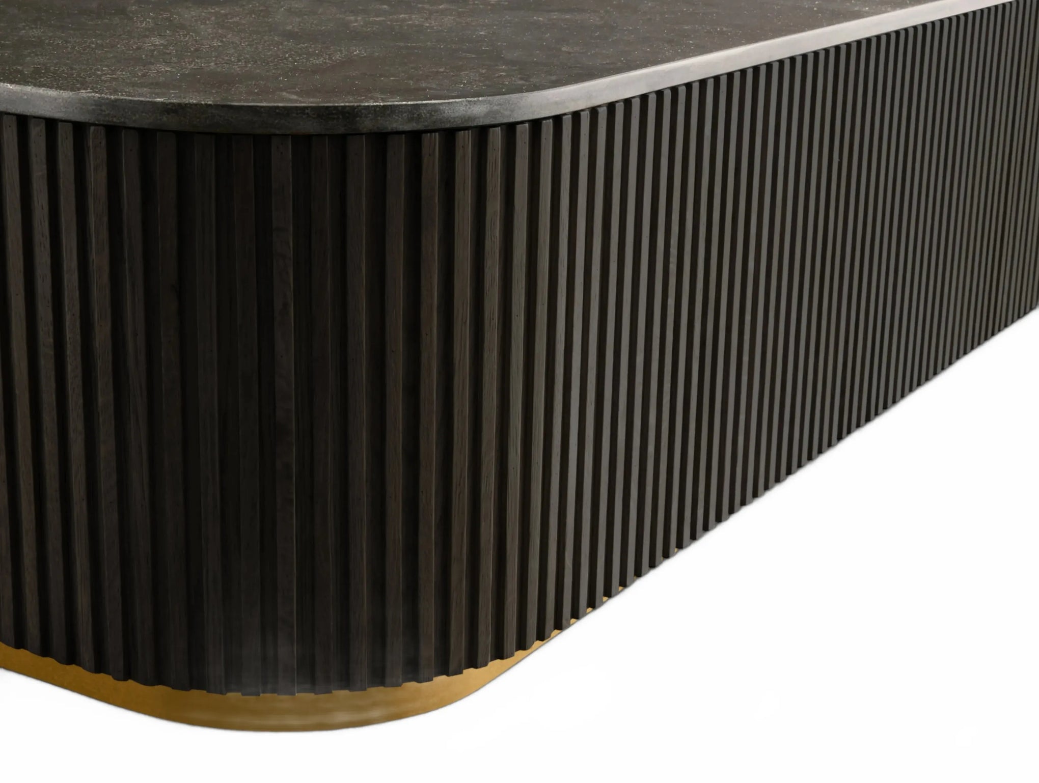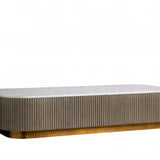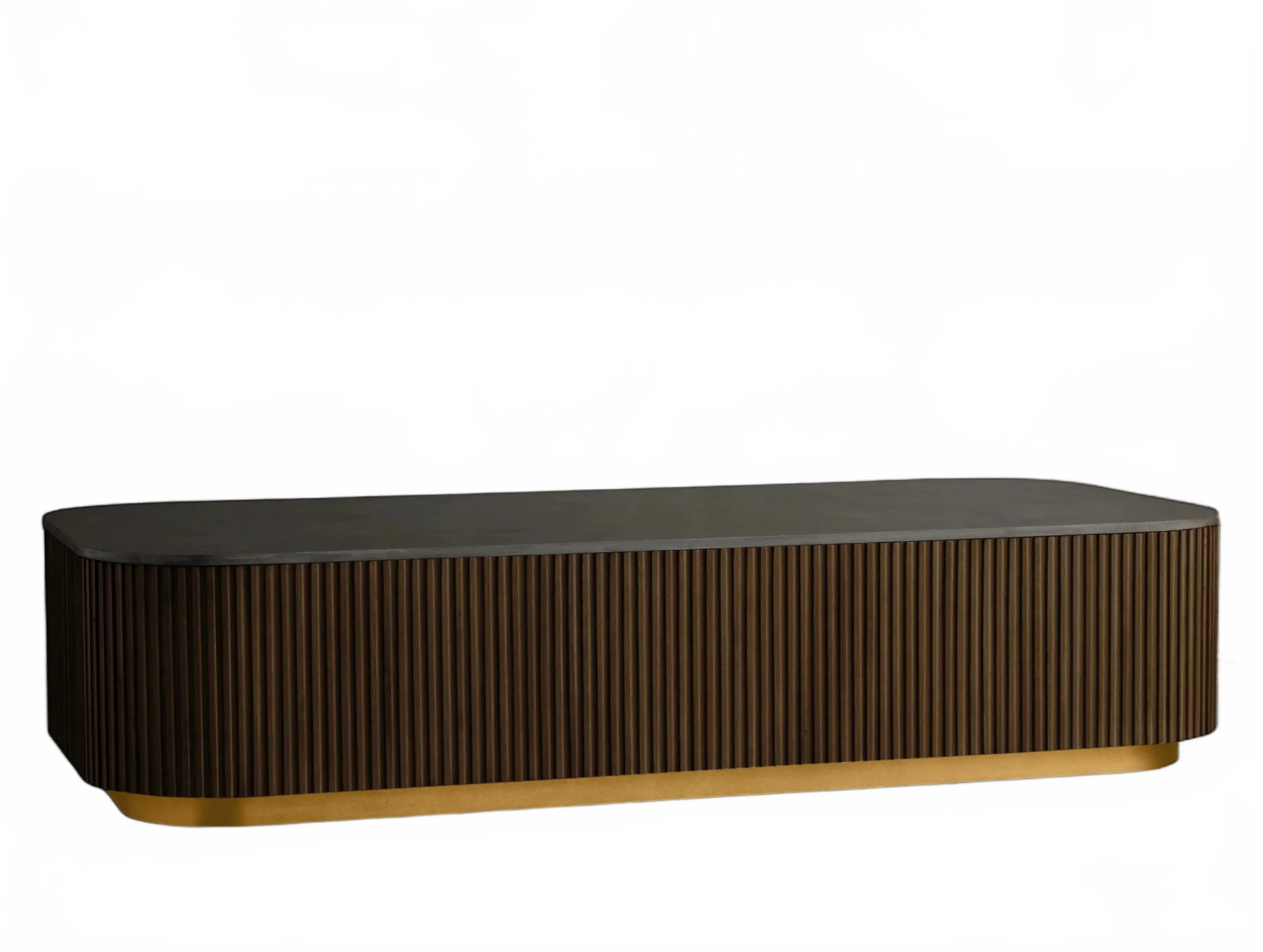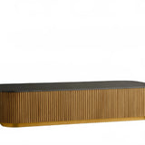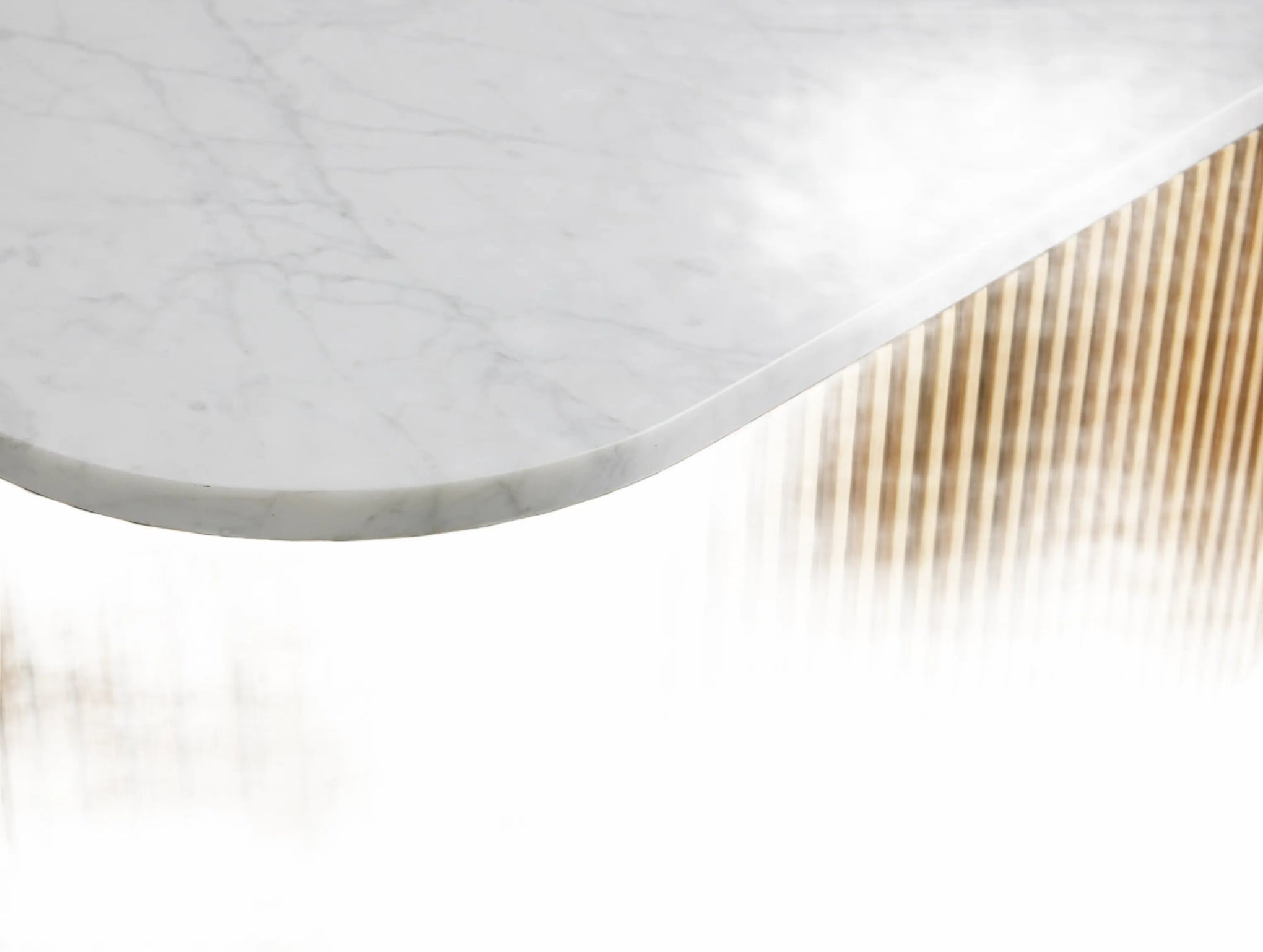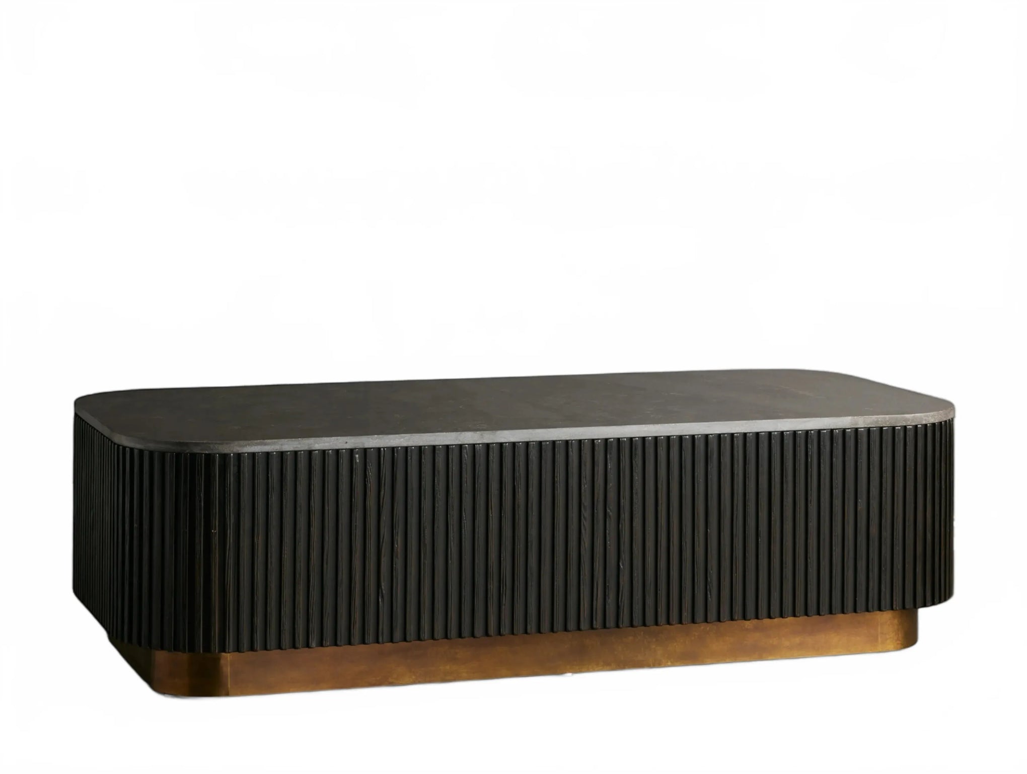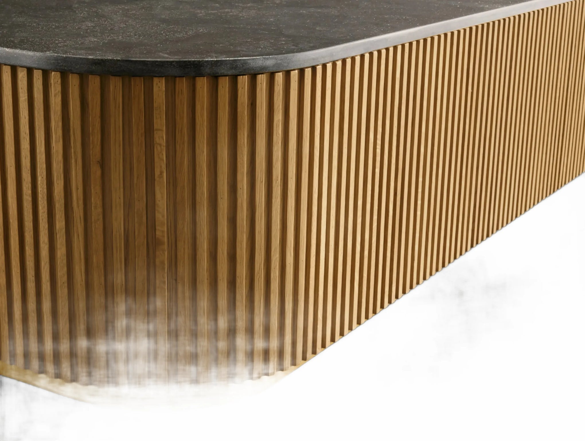 The Rolphin coffee table presents a sophisticated mixed-material composition that marries natural wood with elegant stone. Hand-finished Finnish pine or premium white oak is paired with reeded oak detailing and crowned with stone in white marble or bluestone. A brass-finished plinth base finalizes the aesthetic, delivering refined style and lasting durability—an attention-grabbing centerpiece for every living space.