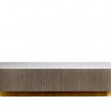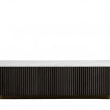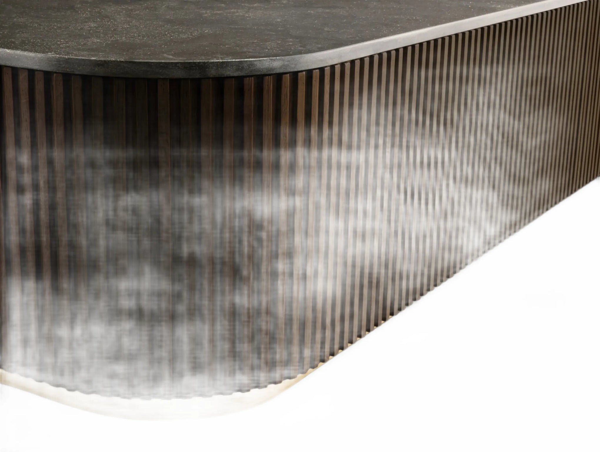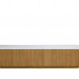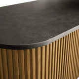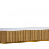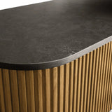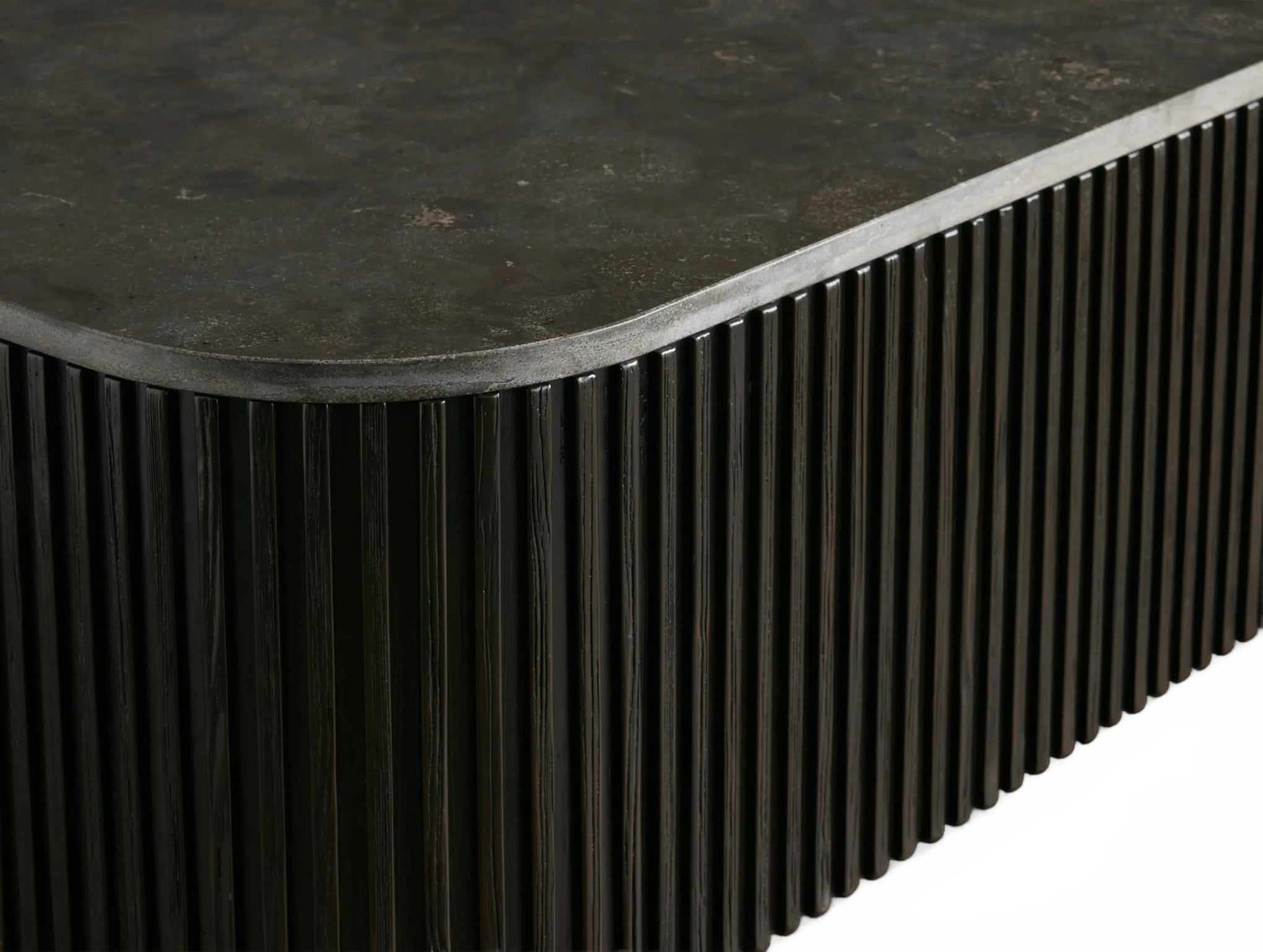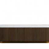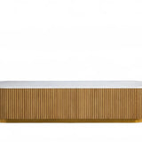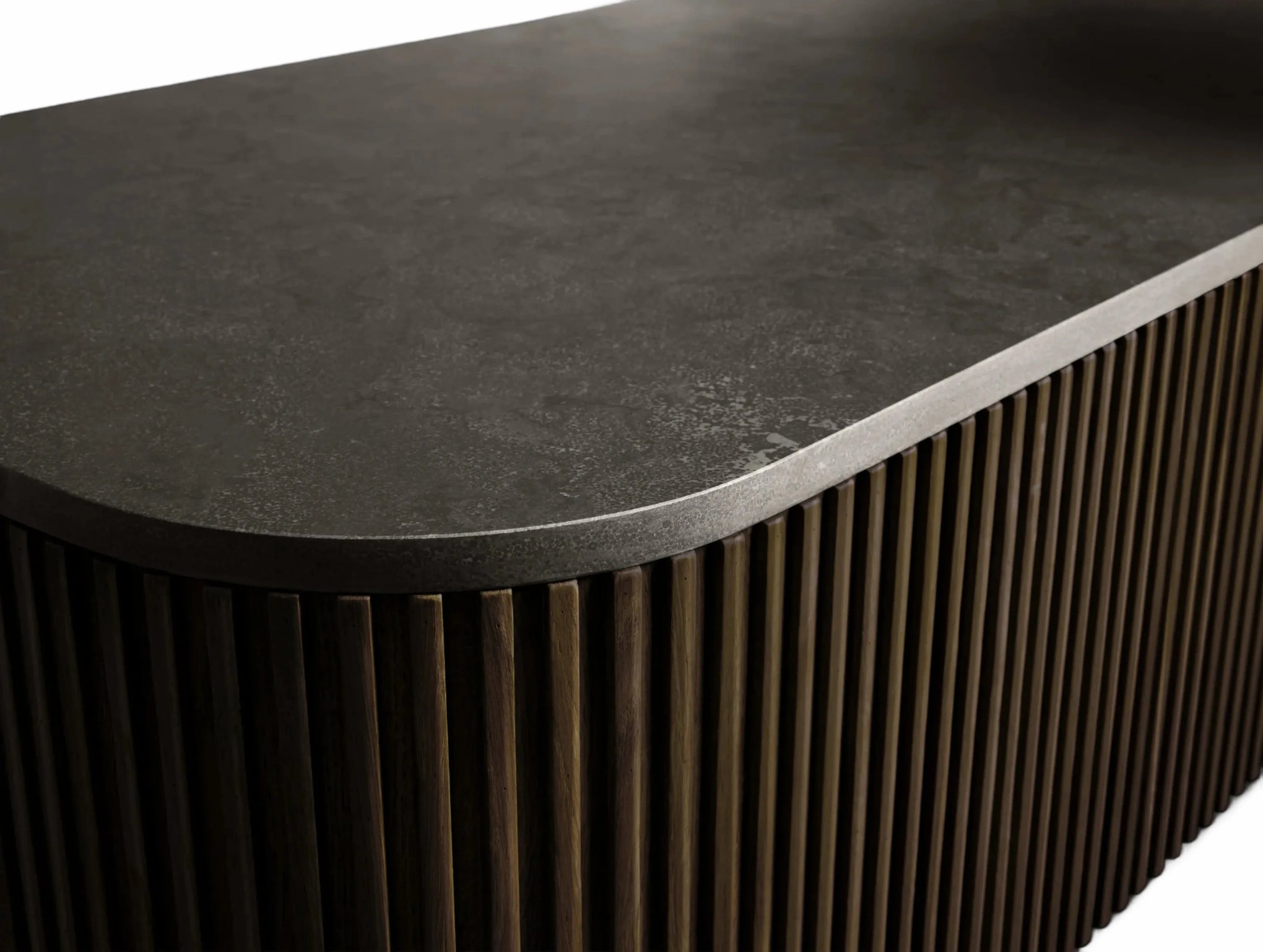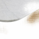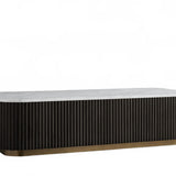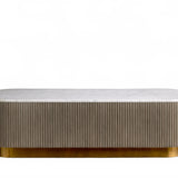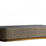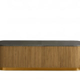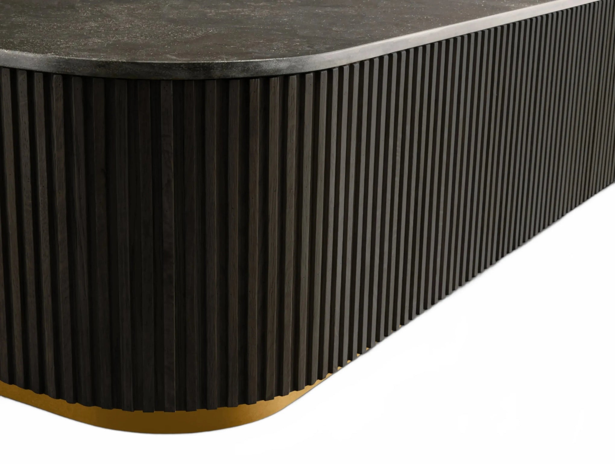 The Rolphin coffee table presents a sophisticated mixed-material composition that marries natural wood with elegant stone. Hand-finished Finnish pine or premium white oak is paired with reeded oak detailing and crowned with stone in white marble or bluestone. A brass-finished plinth base finalizes the aesthetic, delivering refined style and lasting durability—an attention-grabbing centerpiece for every living space.