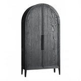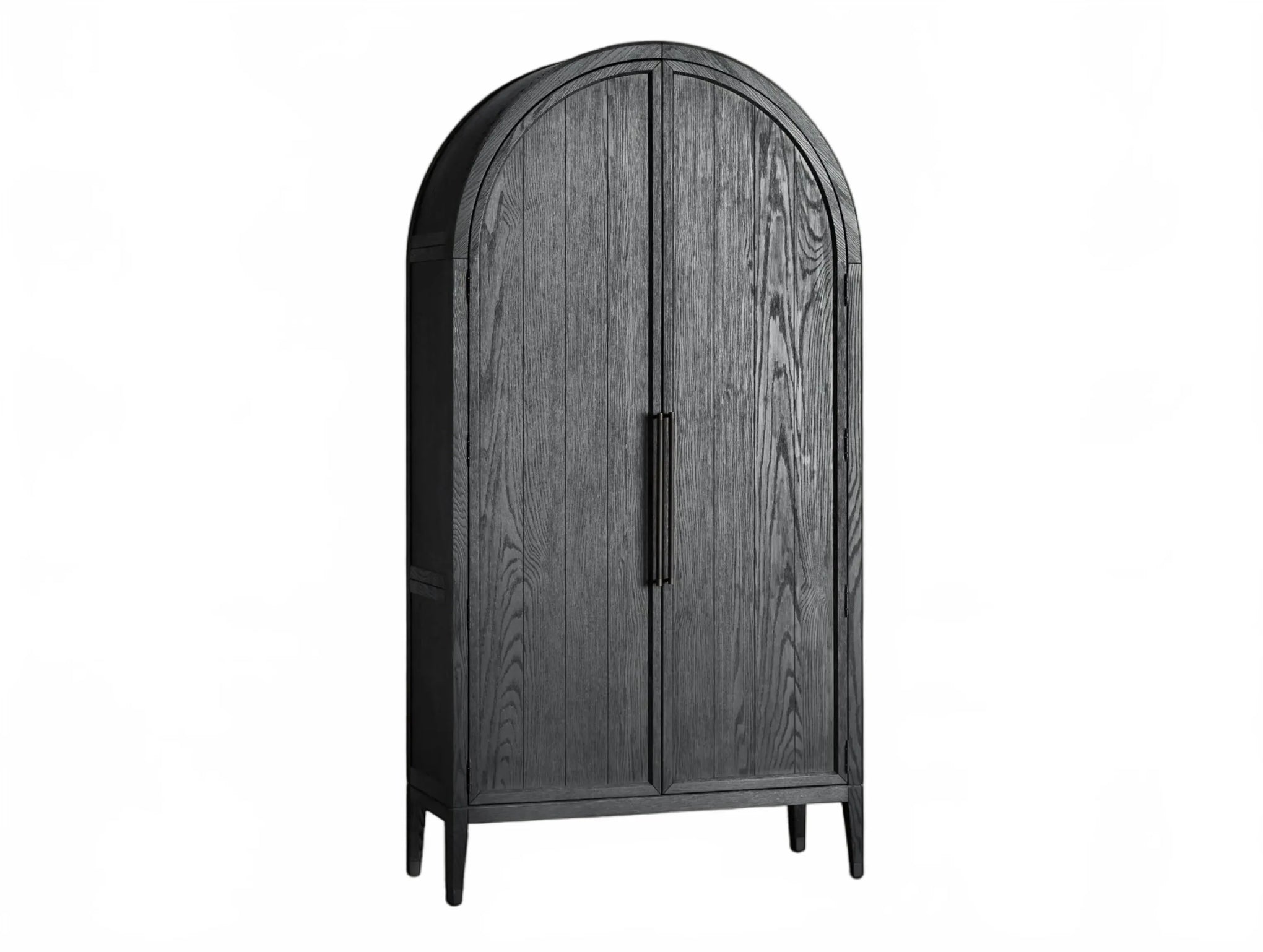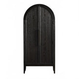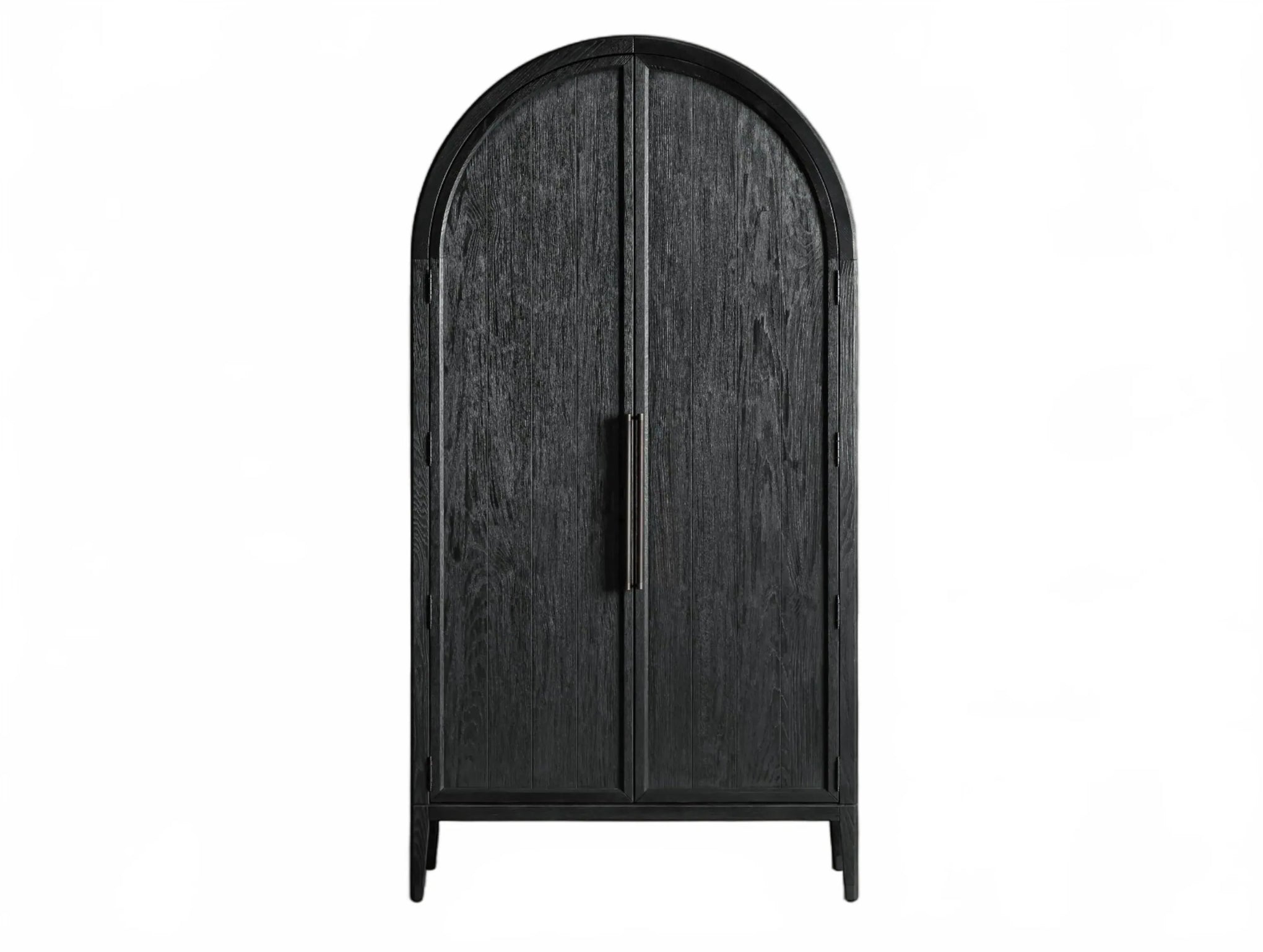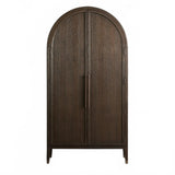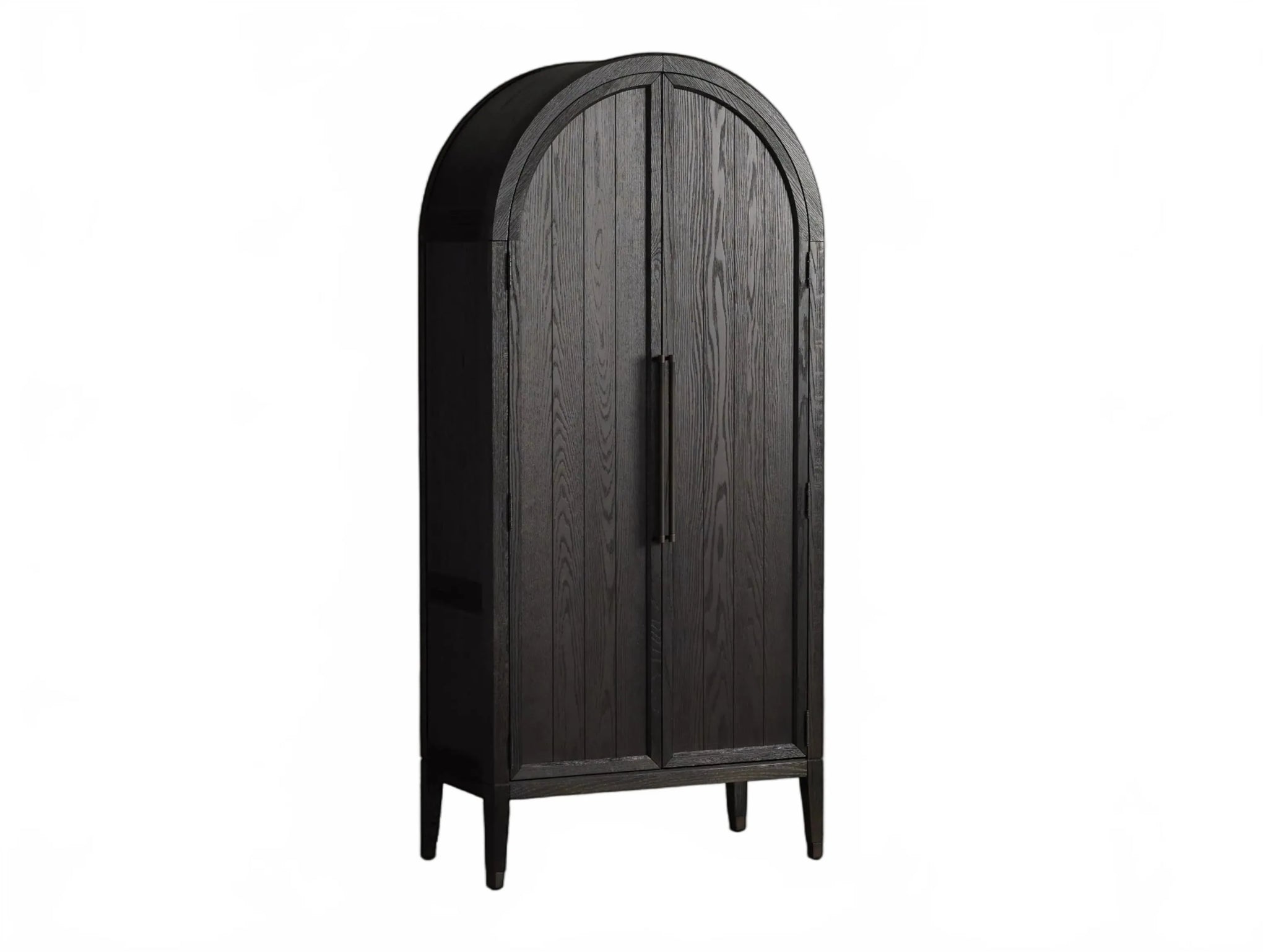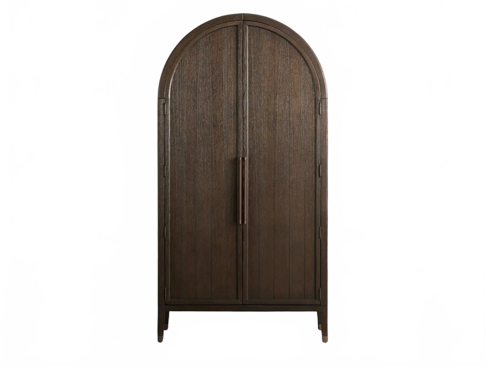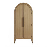 The Hottiy Cabinet merges graceful curves with the distinctive grain of oak, providing ample storage for both display and organization. Crafted in China from solid oak and oak veneers, each piece is hand-finished to emphasize the natural beauty of the wood. Shiplap back panels and contrasting finishes create visual depth, while exposed hinges, reeded hardware in an antiqued finish, and brass-capped feet lend refined character. Five shelves, including three adjustable options, plus cord management openings, ensure this cabinet remains as practical as it is elegant. Solid aluminum alloy knurled pulls complete the design with a sense of craftsmanship.