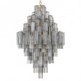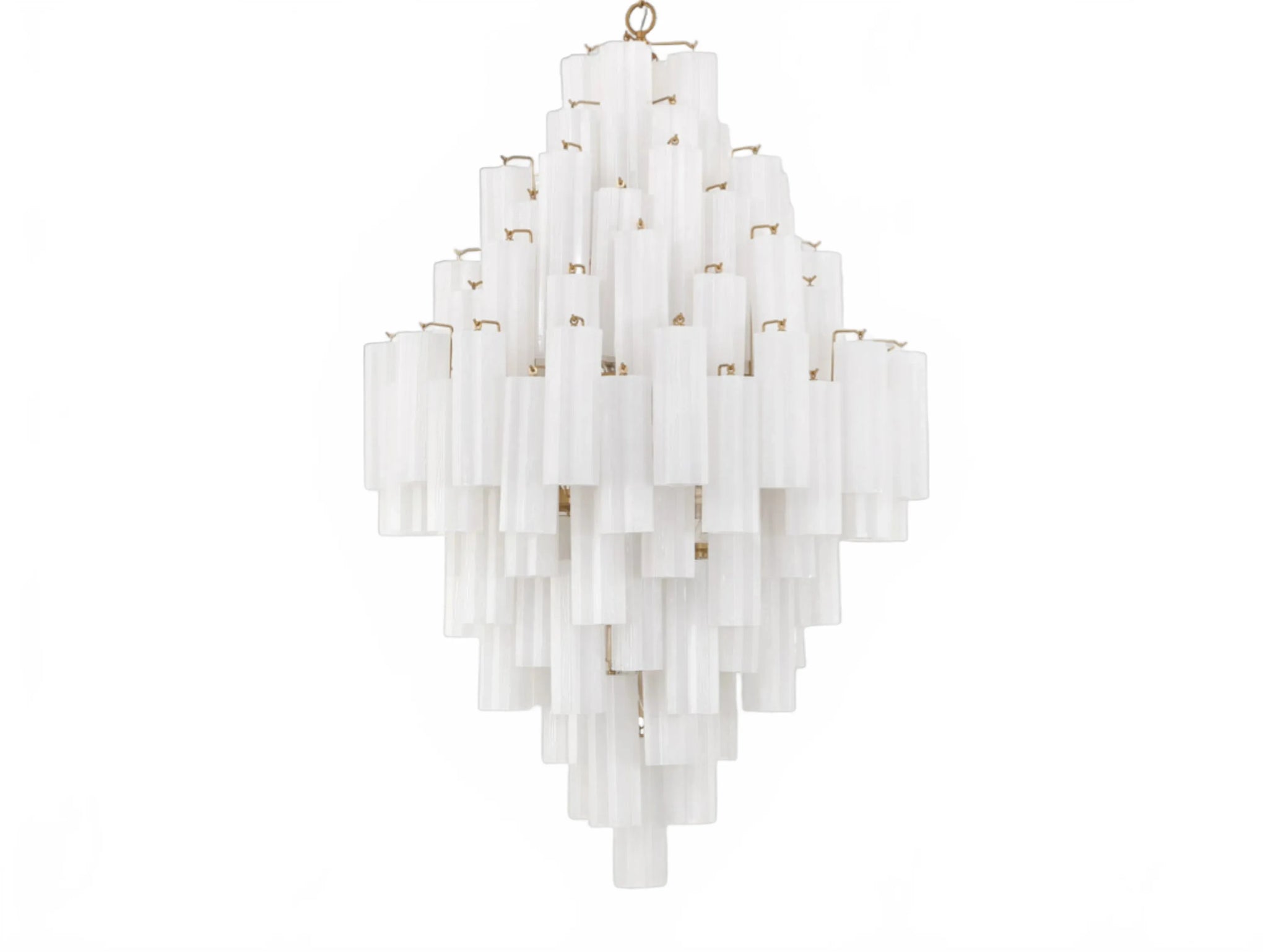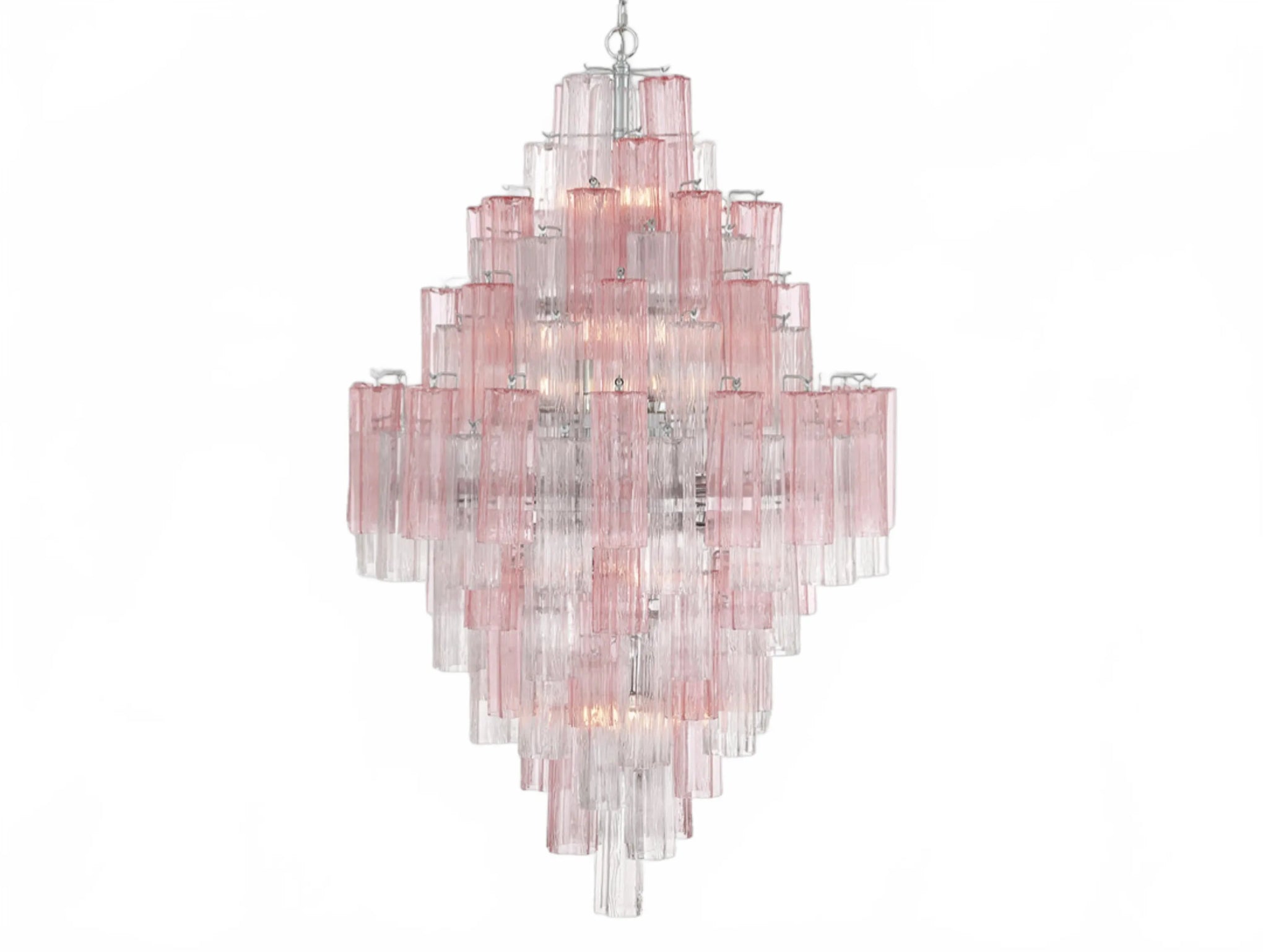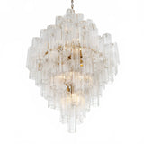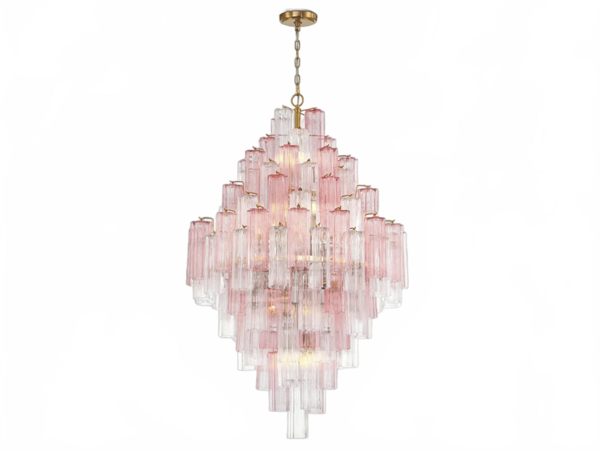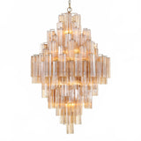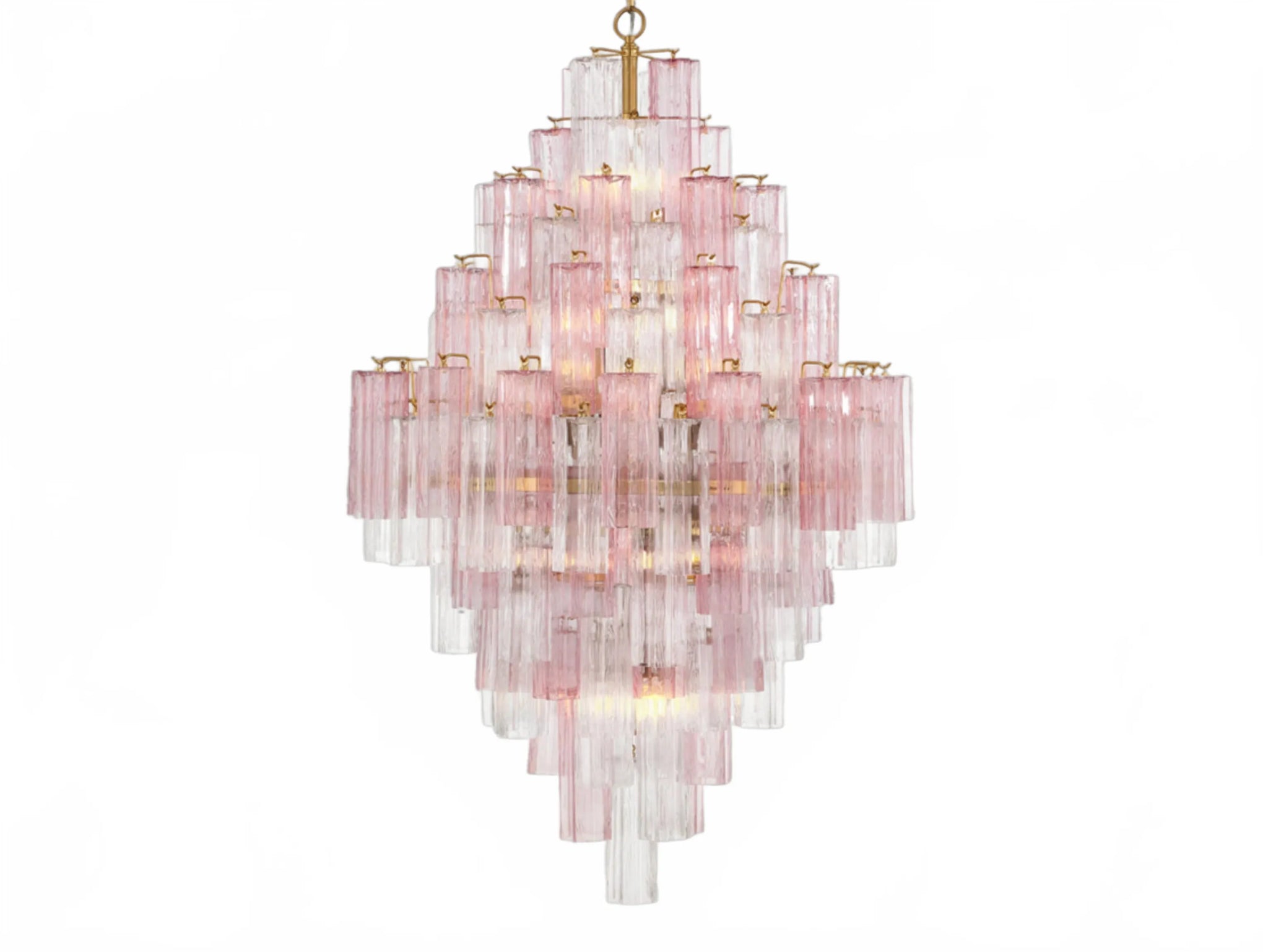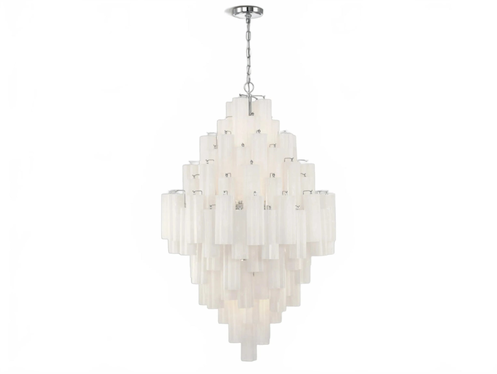 The Adois Foyer Chandelier introduces mid-century artistry into the center of your home. Influenced by the enduring Tronchi style, this chandelier showcases a refined frame in polished chrome or aged brass, paired with transparent rows of textured glass tubes that capture and refract light beautifully.