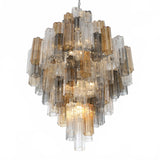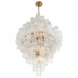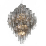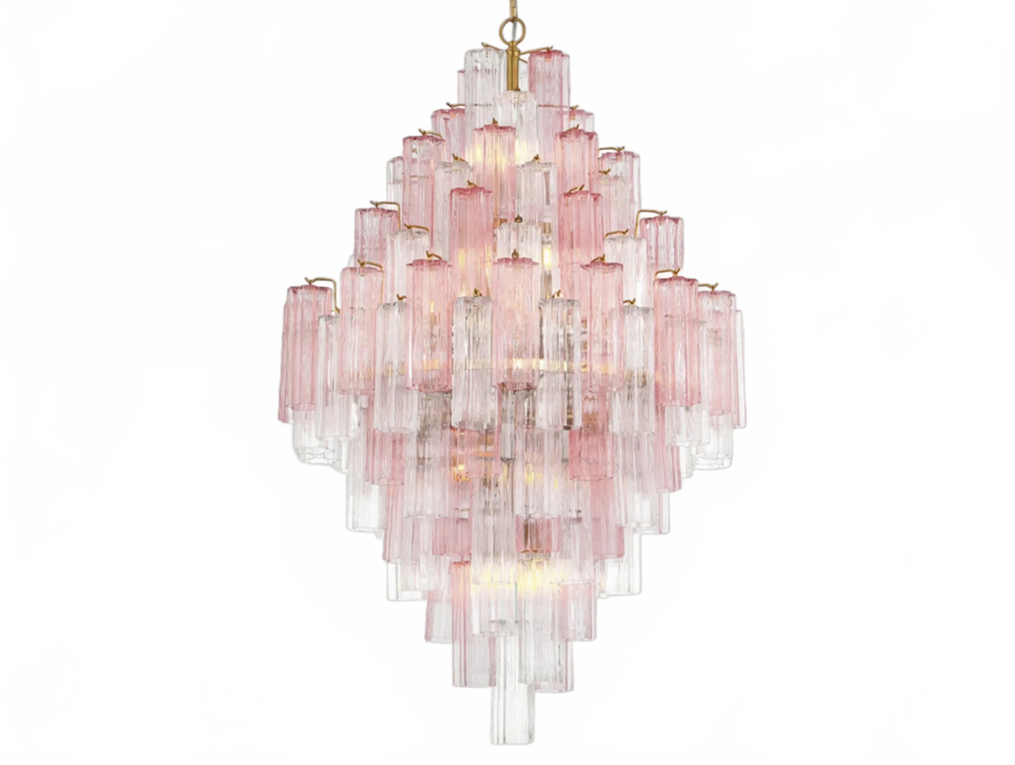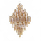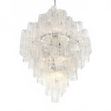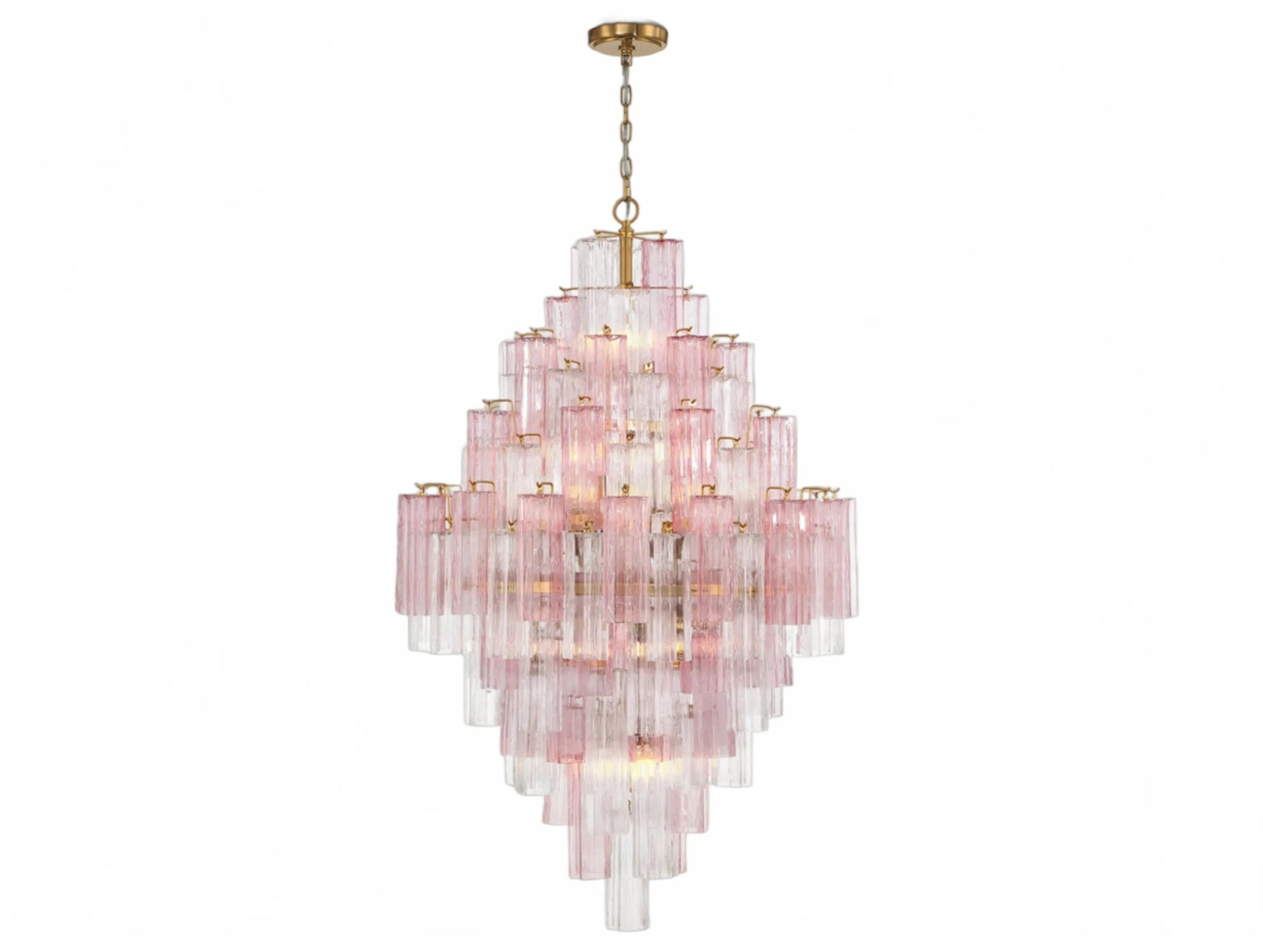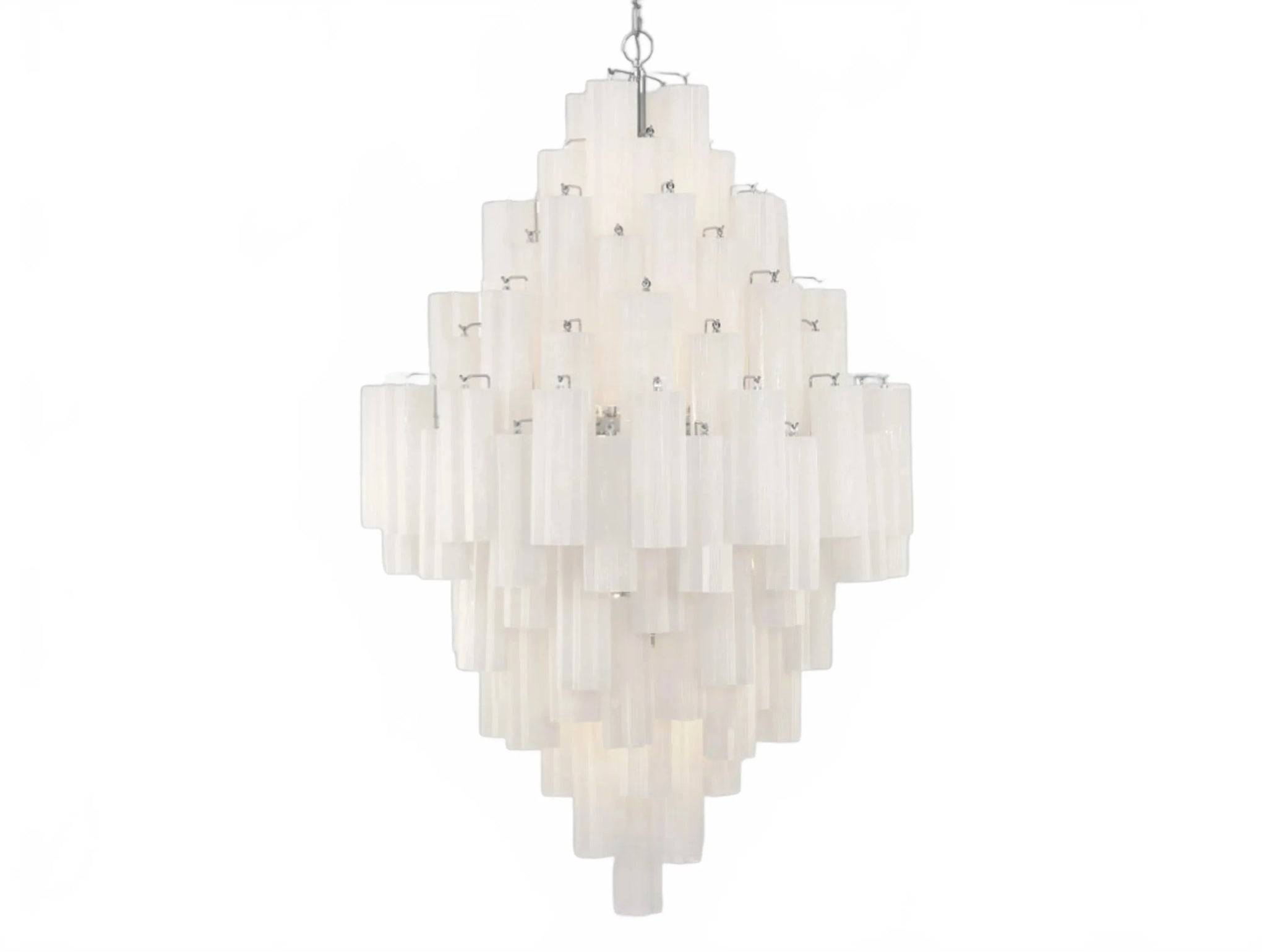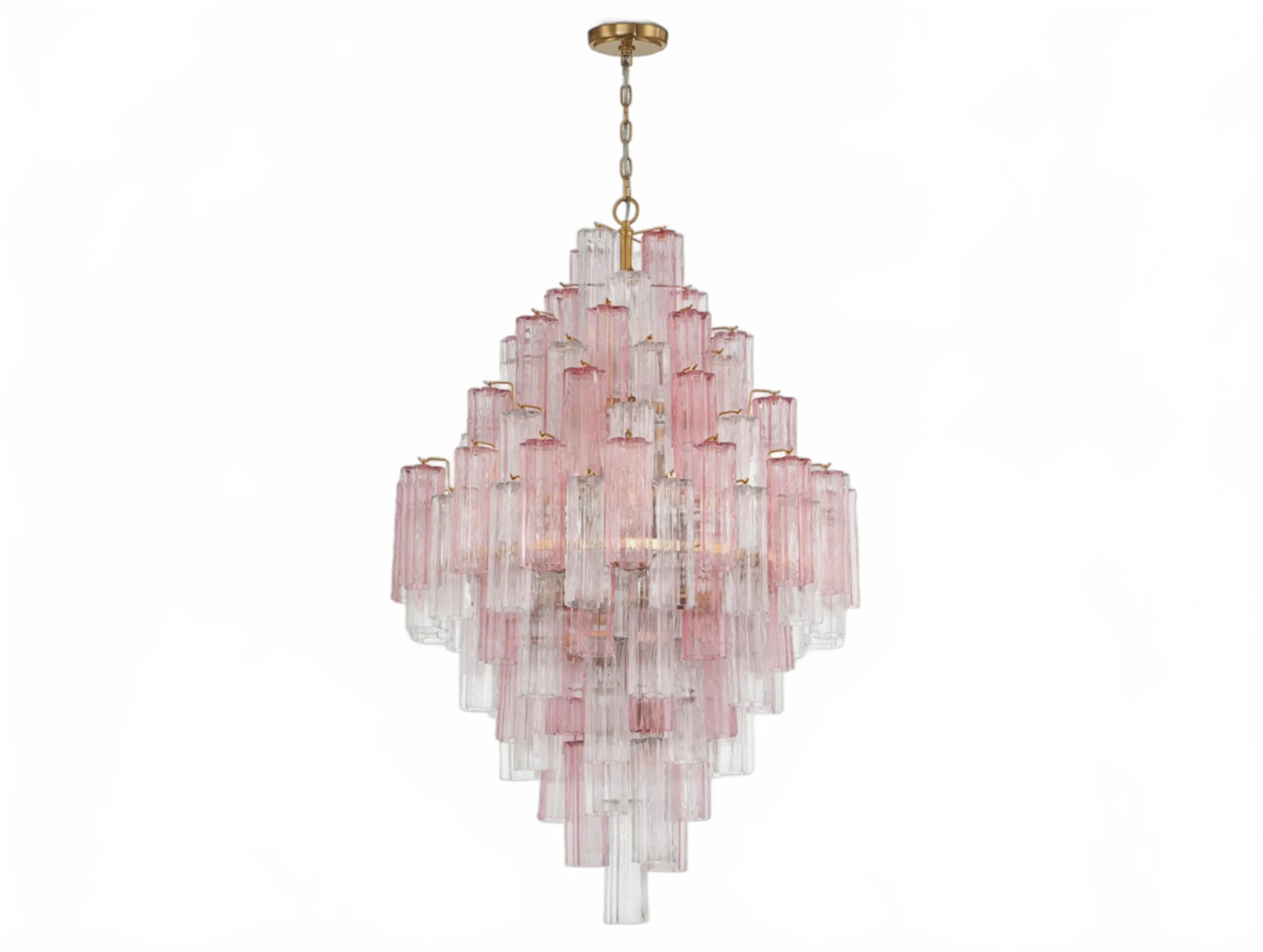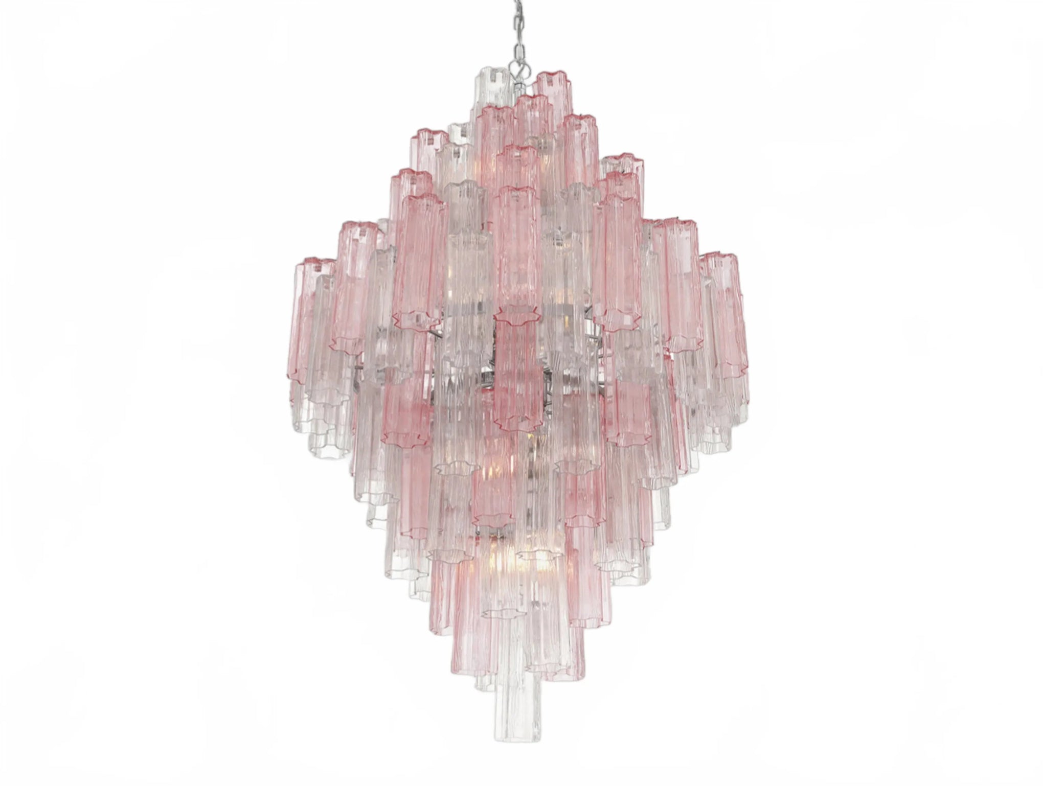The Adois Foyer Chandelier introduces mid-century artistry into the center of your home. Influenced by the enduring Tronchi style, this chandelier showcases a refined frame in polished chrome or aged brass, paired with transparent rows of textured glass tubes that capture and refract light beautifully.