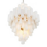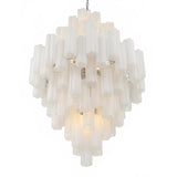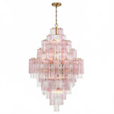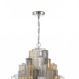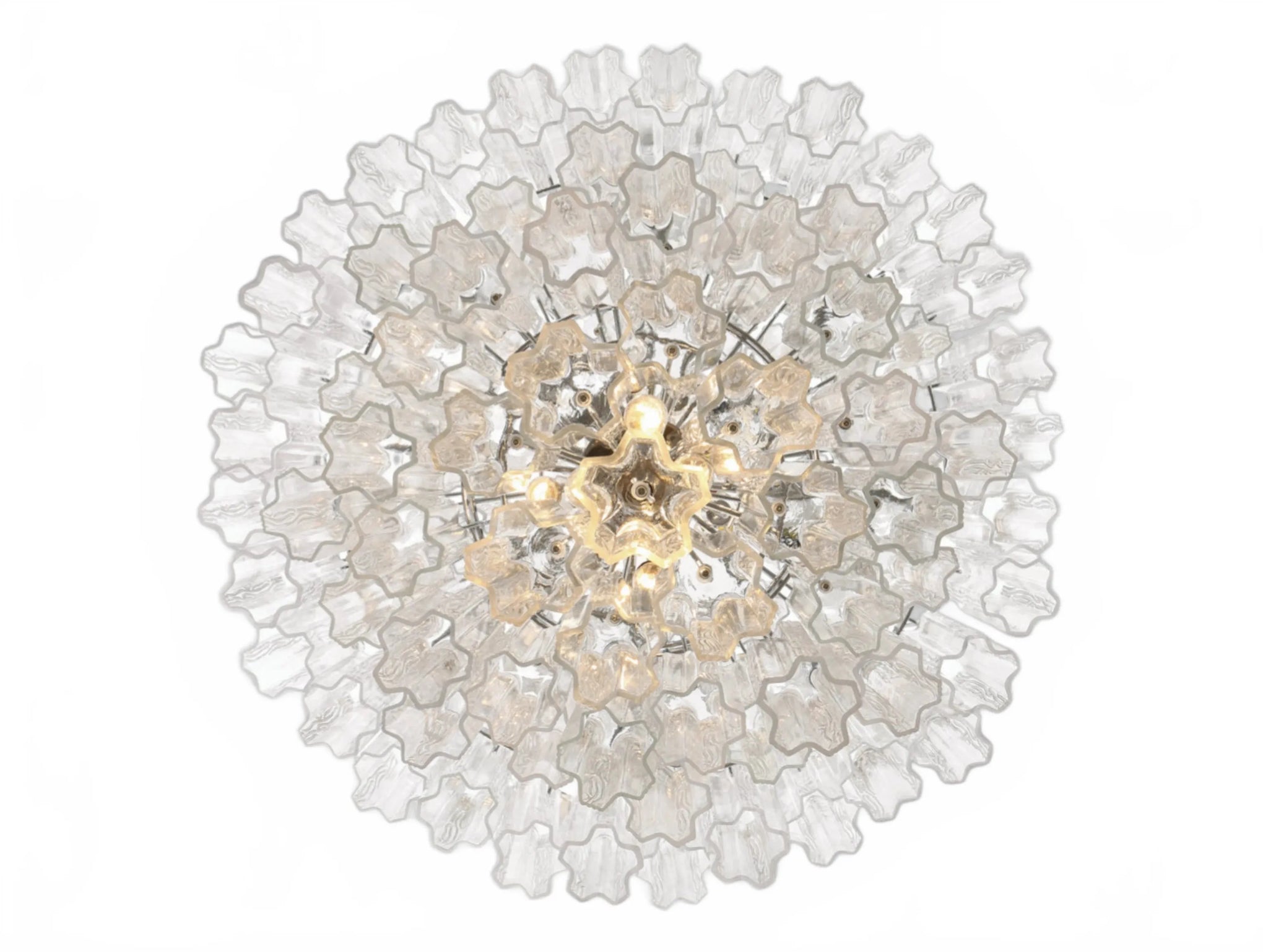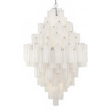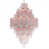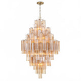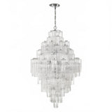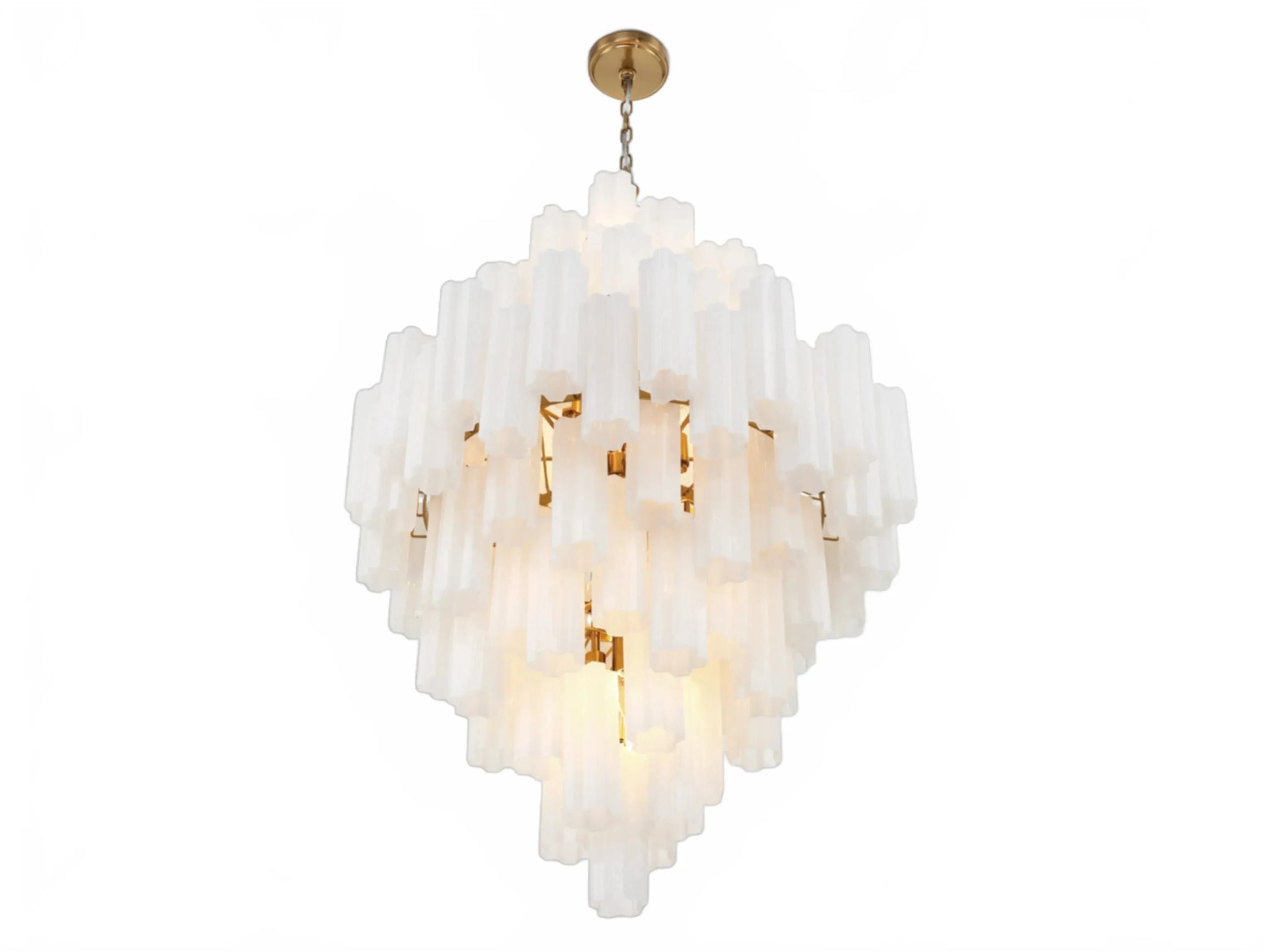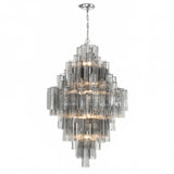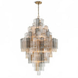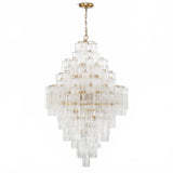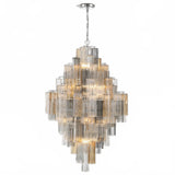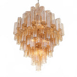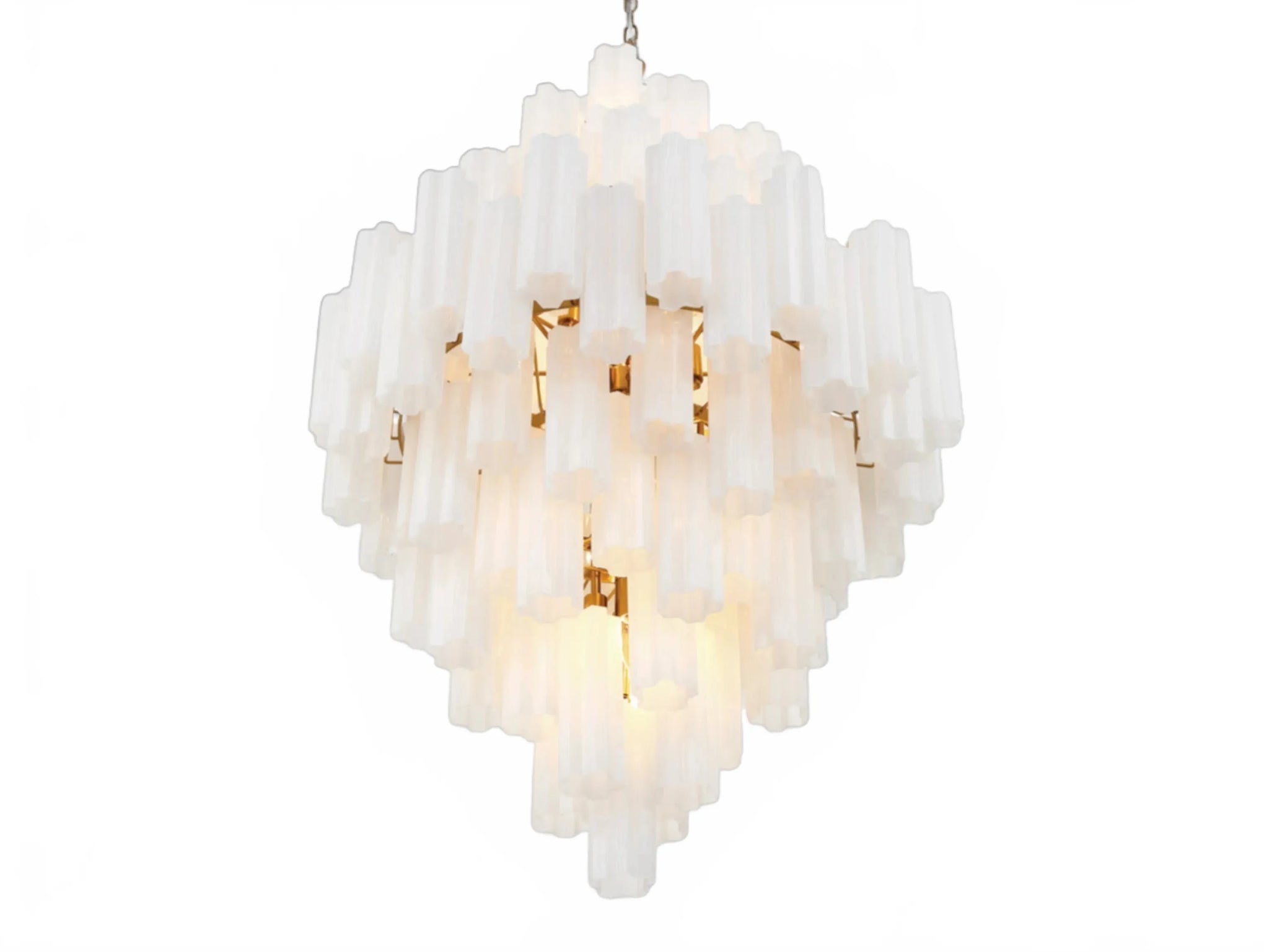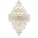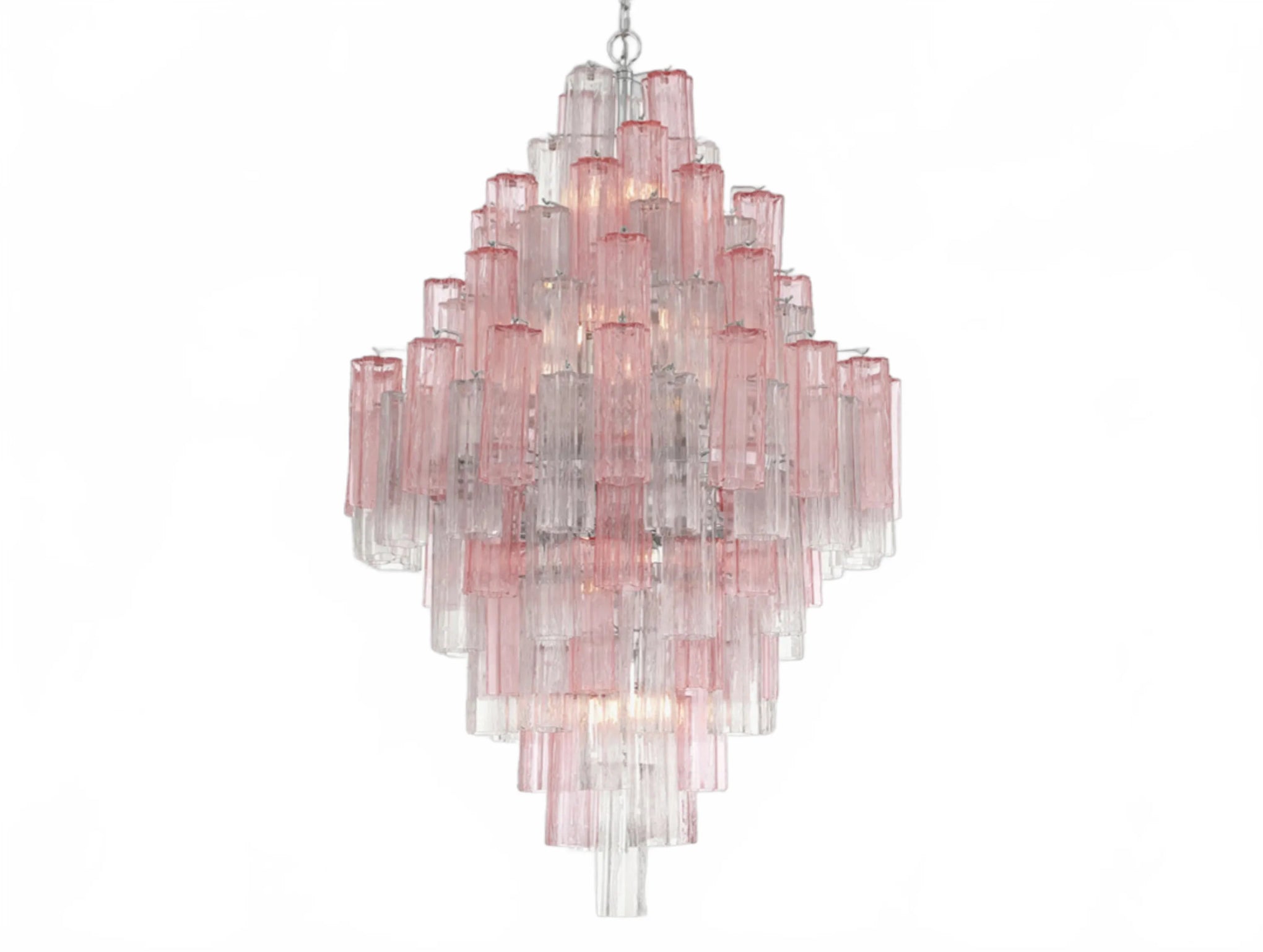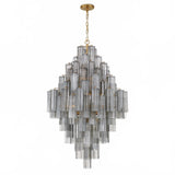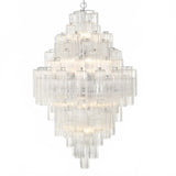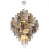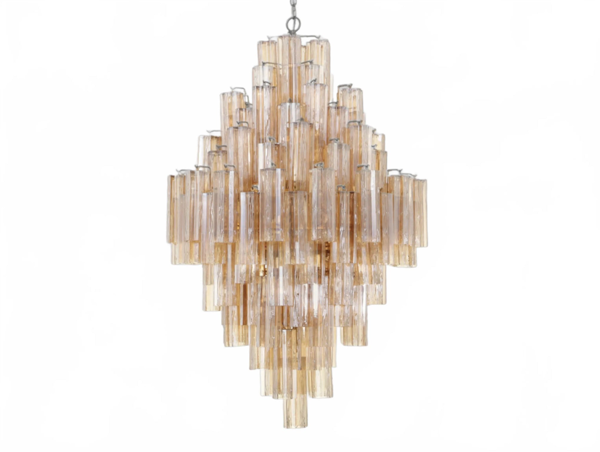 The Adois Foyer Chandelier introduces mid-century artistry into the center of your home. Influenced by the enduring Tronchi style, this chandelier showcases a refined frame in polished chrome or aged brass, paired with transparent rows of textured glass tubes that capture and refract light beautifully.
