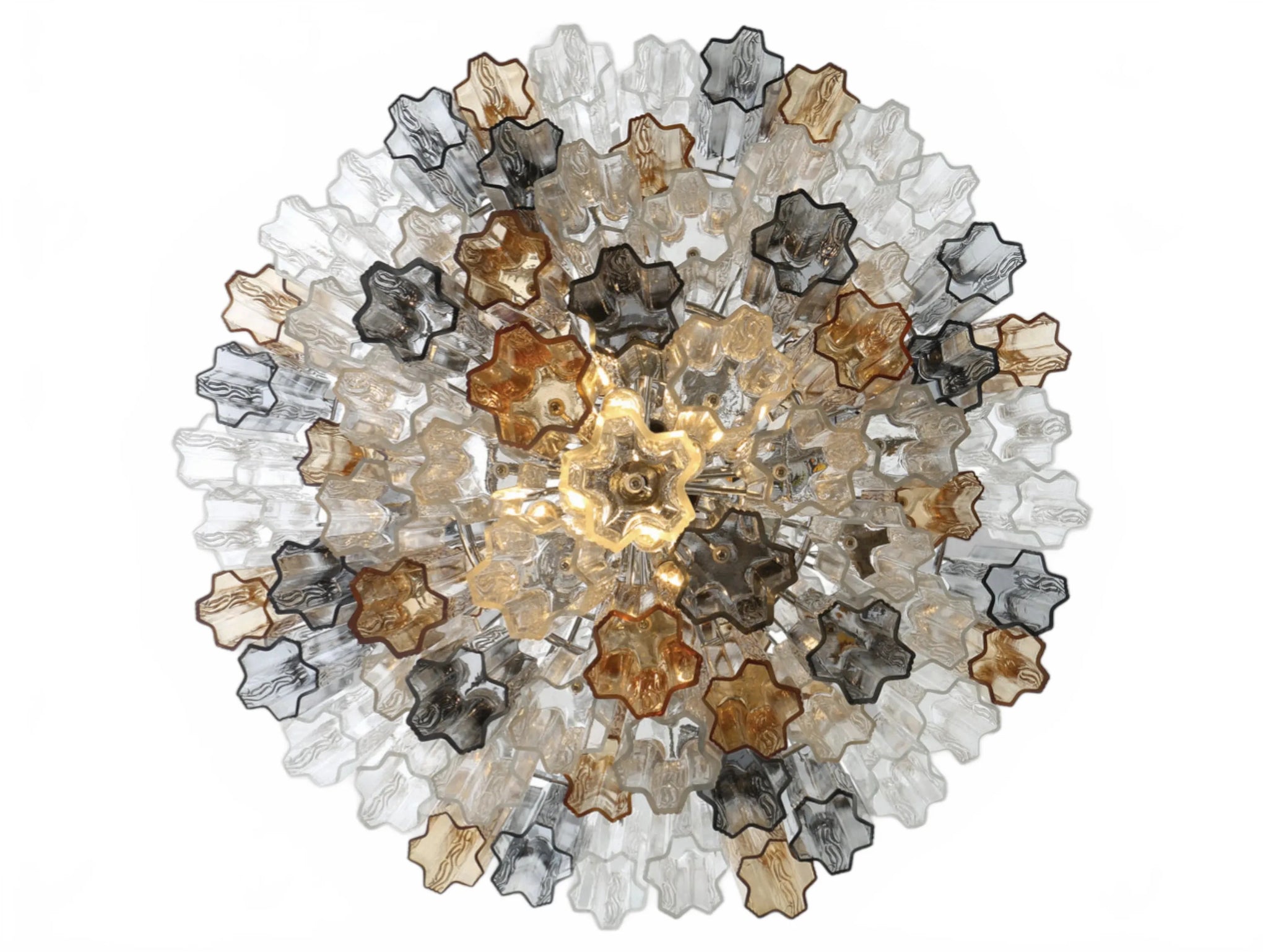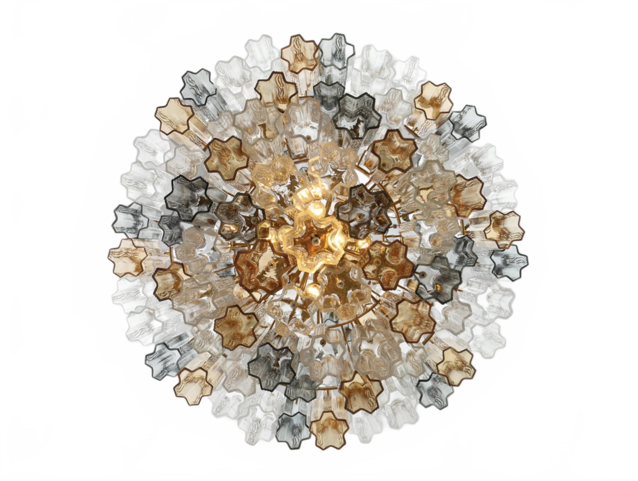 Its five-point rounded star profile forms a striking focal point, perfect for impressive foyers, entryways, or double-height living areas. Offered in clear, amber, smoke, white, or Autumn — a mesmerizing blend of amber, clear, and smoke glass.
